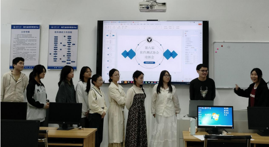 在赛项介绍环节中,罗竹婷、李辉敏、李瑶、文颖琳四位小组组长分别对web应用测试、开发者测试、嵌入式测试和移动应用测试进行基础介绍,让新成员明晰了协会的架构组织,为其在软件测试领域的学习提供了方向指引。随后,新老成员进行了自我介绍。现场氛围轻松愉悦,新成员们谈及自己的专业、对软件测试领域的初步认知以及加入协会的期待;老成员则分享了在协会中的经历、收获以及对新成员的欢迎。