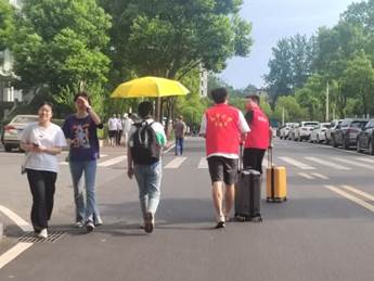 烈日下,是志愿者们忙碌的身影,热情的红铺满了校园,以心迎新,温暖整个校园。整个迎新流程井然有序,一环扣一环,每一个环节都有志愿者协助,为计算机学子的顺利报到保驾护航。