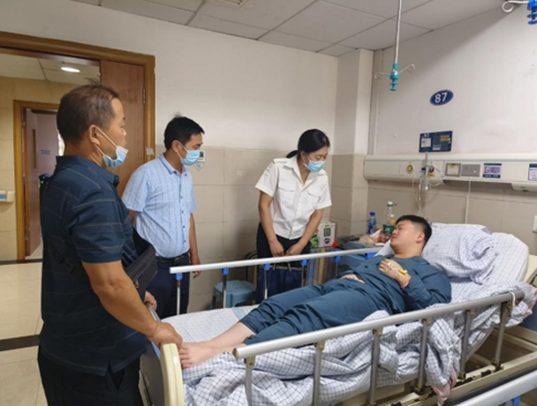 9月6日,太阳集团城娱8722党委书记谭敏生、党委副书记何战胜、团委书记陈杰烜一行前往医院看望慰问曹文修和刘文轩同学,为其送去关爱与温暖。