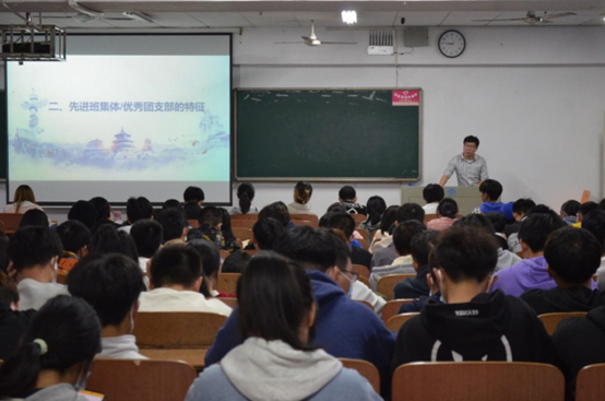 最后,陈杰烜以“如何打造先进班集体和优秀团支部”为题,从“什么是先进班集体和优秀团支部”、“先进班集体和优秀团支部的特征”、“如何打造先进班集体和优秀团支部”三个方面进行了阐述,并结合优秀案例,将以前的“十佳先进班集体”和“十佳团支部”的一些优秀做法进行了分享和讲解,他号召2022级各班要加强组织建设,营造良好的班级氛围,共建先进班集体和优秀团支部。