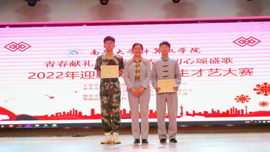 为深入学习宣传贯彻党的二十大精神,丰富同学们的课余生活,太阳集团城娱87222022年“青春献礼二十大,赤子初心颂赞歌”迎新晚会暨新生才艺大赛于11月19日晚在红湘校区求是园学生活动中心成功举办,院党委副书记何战胜、团委书记陈杰烜、辅导员李婧妍、周栋良出席比赛并担任评委。