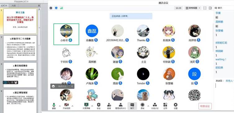 本次班会以“深入学习贯彻党的二十大精神,勇担民族复兴大任,强信心、赢未来”为主题,号召同学们积极学习党的二十大精神,增强学生对党的二十大精神的了解,做实防疫与心理健康教育,提高学生预防疾病意识和自我防护能力,加深学生对心理健康知识的了解,促进学生对自己心理状态的觉察。最后就上学年班级工作和寒假社会实践活动进行了总结,并制定本学期的班级工作计划,为打造先进班集体助力。
