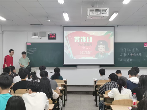 在答辩结束后,院学生党建工作委员会学生负责人蒋梧广同学就其之前的活动经历做出分享,希望通过雷锋月活动在大家心里种下志愿服务的种子,营造我为人人、人人为我的良好社会风尚。