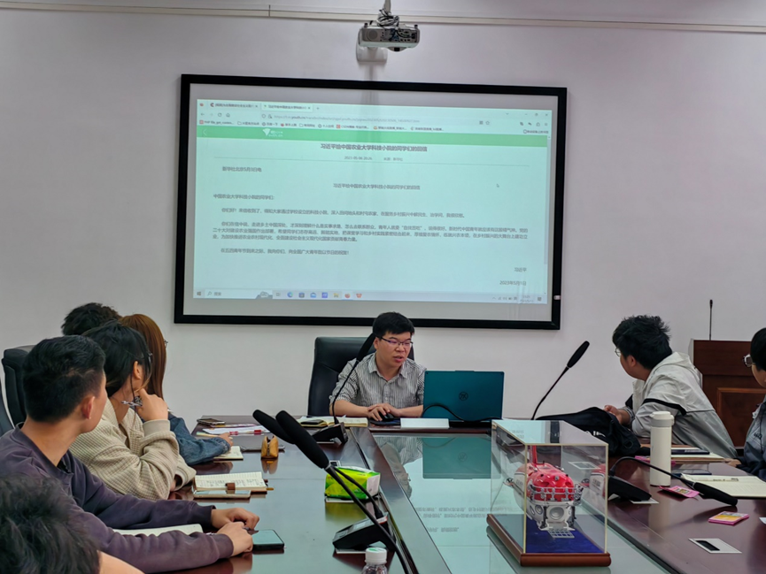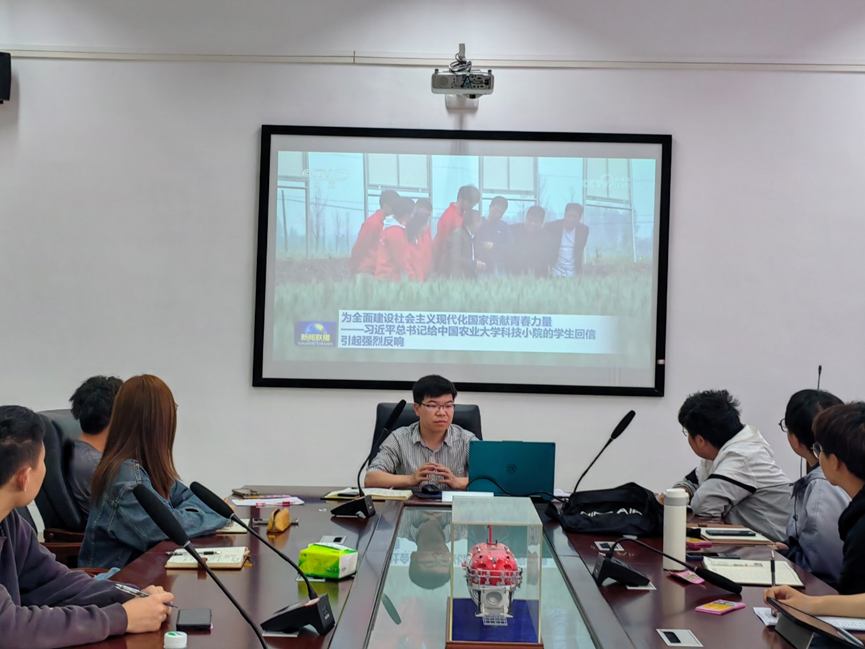 5月12日,太阳集团城娱8722于崇业楼336会议室深入学习习近平总书记给中国农业大学科技小院的学生重要回信精神,院团委书记,全体学生干部共100余人参加了此次学习交流会。
