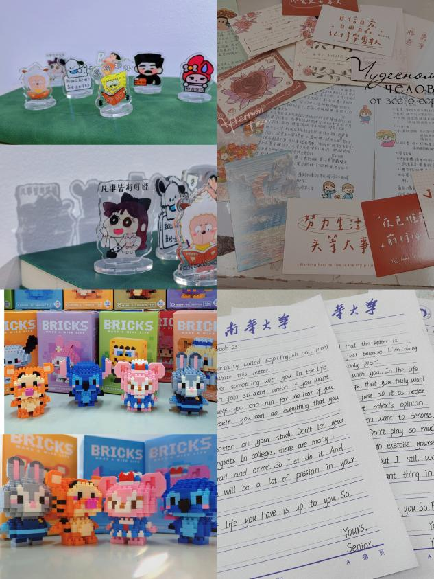 在新生报到之后,安排了抽奖活动,每一份奖品中蕴含着学长的殷殷期许。拼接积木,表示着大一的新生们要像积木一样一步一步拼接,在大学生活里,一步一步走向美好未来;励志小立牌,象征着大一新生应该不忘初心,努力学习,以优异的成绩回报父母、老师;学长给新生的一封信,里面有学长的美好祝愿和一些个人经验来帮助新生更好的充实大学生活,更快的融入学校。