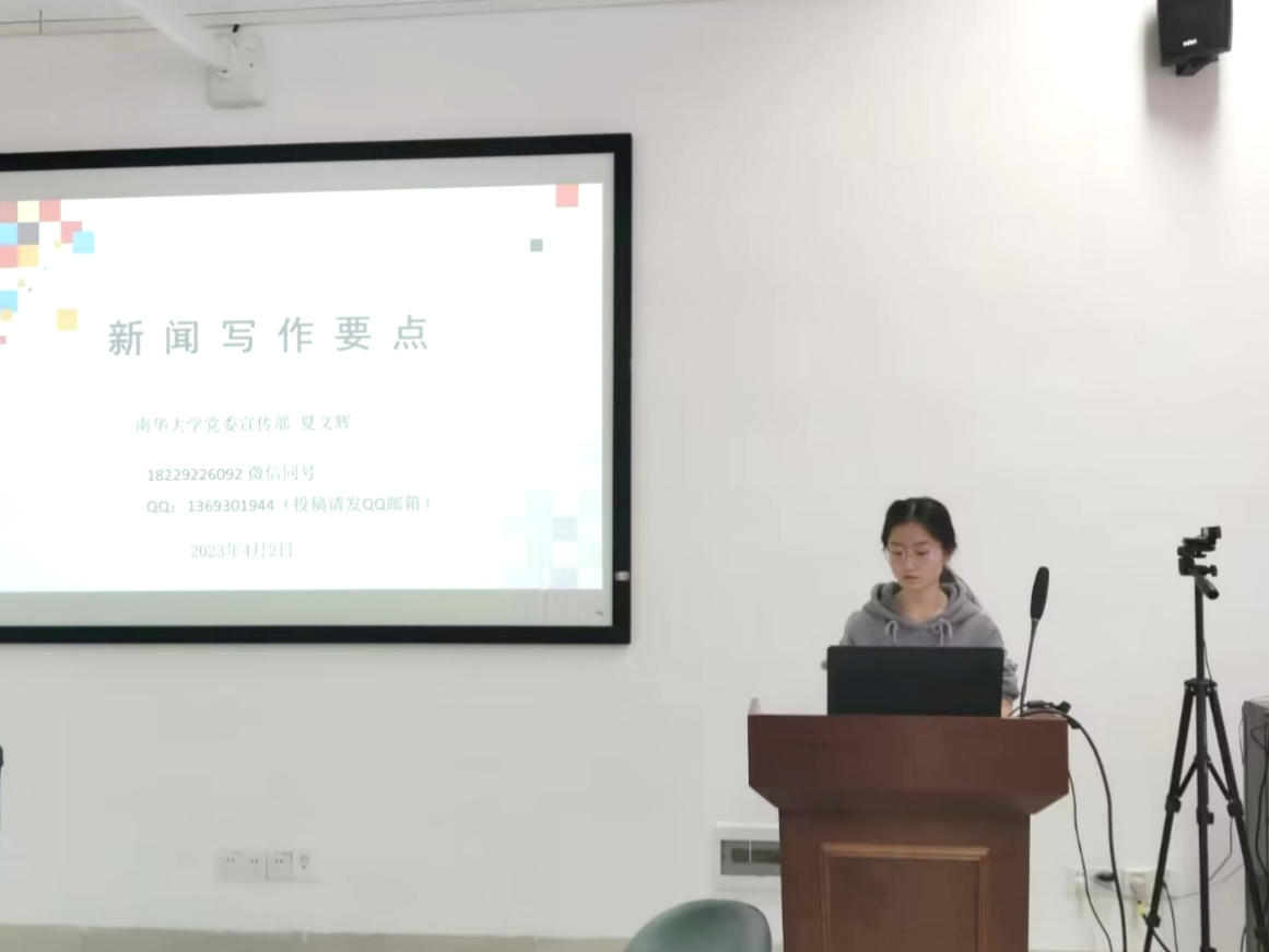 随后,融媒体中心主任梁亚茹就新闻写作要点进行了详细讲解,点出写新闻稿时常出现的错误,并提出“先模仿再采写再进行对比总结”的写稿建议。
