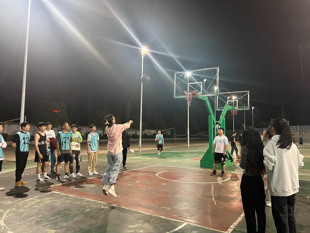 趣味篮球赛在中场休息时进行,规则为投十个球,投球数最多者胜。比赛在掌声和欢呼中开始。参赛成员相互鼓励,展现了良好的竞技氛围,本场趣味篮球赛由研一的邬浩晴和杨佳拔得头筹。