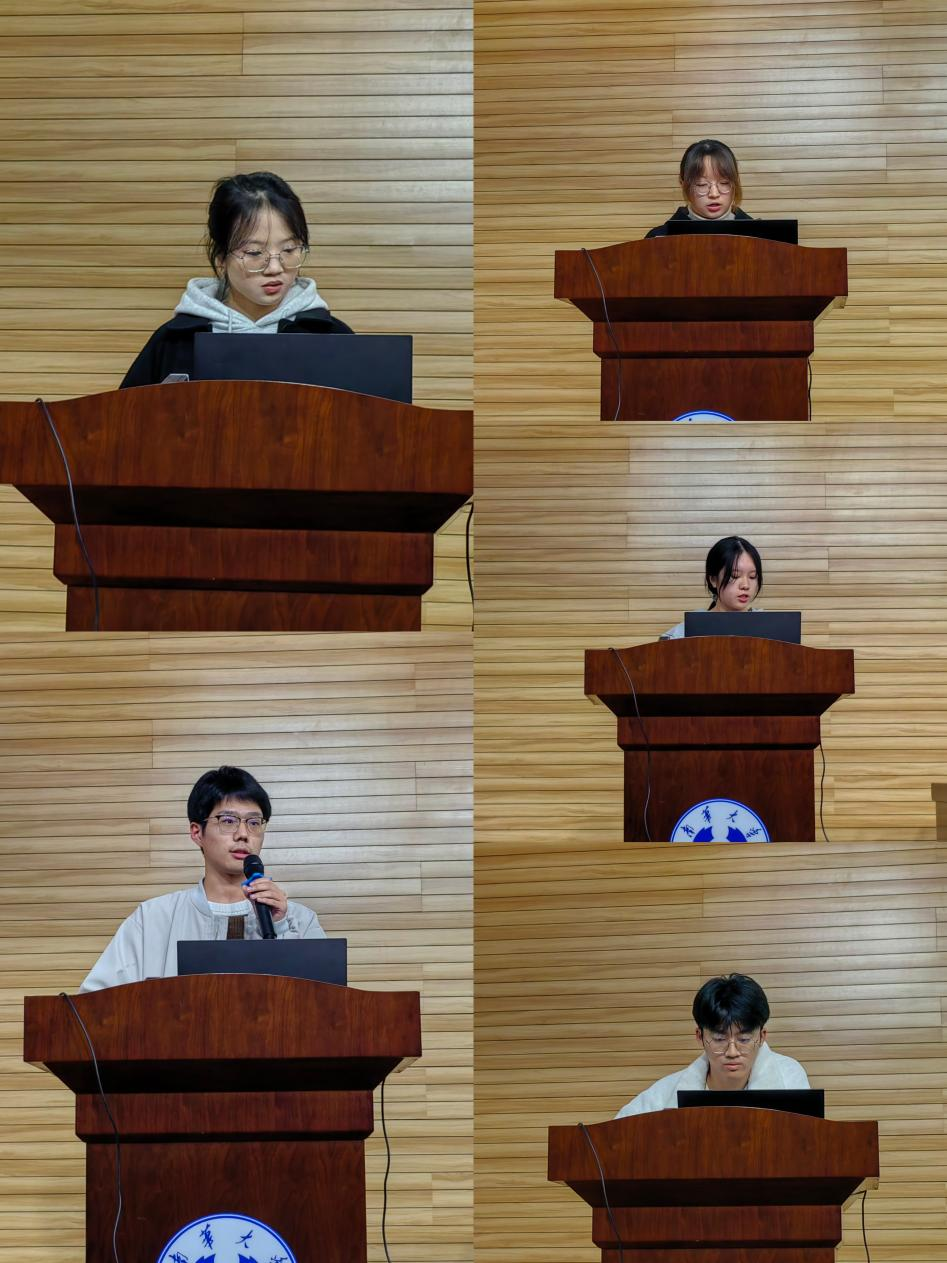 会议第一项,各部门代表上台进行工作汇报总结。各部门代表从本学期的工作情况、目前存在的问题以及对未来工作的安排进行了总结。接着,学生会执行主席刘鑫磊进一步强调了目前存在的个别突出问题,希望未来团学干部与班级干部的配合能够更加紧密。会议第三项,班干部与团学干部就相关具体事项双向交流。