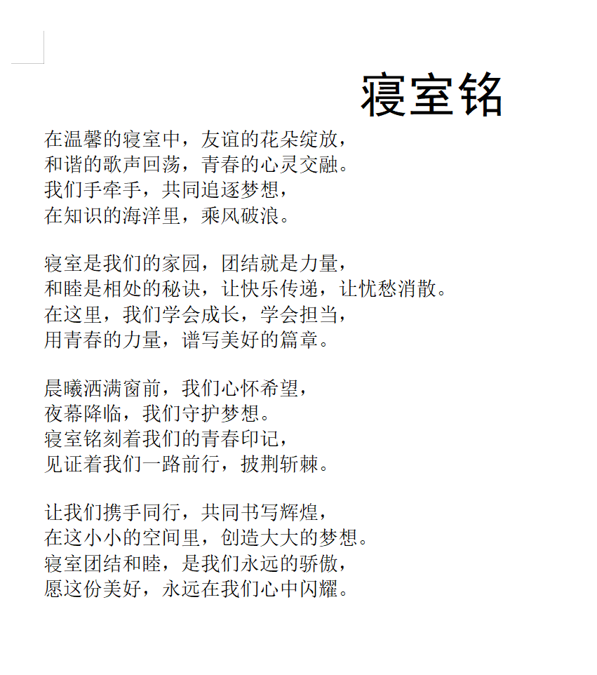 “寝室铭”优秀作品