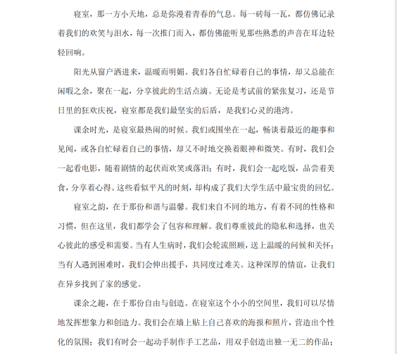 其中,在“寝室铭”活动中,我们看到了同学们优美的文采,许多同学仿佛“刘禹锡附体”,从名篇《陋室铭》入手,呈现了一篇篇精妙绝伦的“寝室铭”;在“回顾校史,凝聚精神”活动中,我们看到了同学们对学校的热爱;在“寝室之语”活动中,我们看到了同学们对室友真挚的感情,让我们感受到了寝室之间的情感纽带;在“温馨之家”活动中,我们看到了同学们对寝室的荣誉感和归属感;在“变废为宝”活动中,我们看到了同学们的非凡的创造力;在“同窗时光”活动中,我们看到了每个寝室的美好时光以及同学们优秀的视频剪辑技能;在“寝牌风云”活动中,我们看到了同学们新颖的设计力。