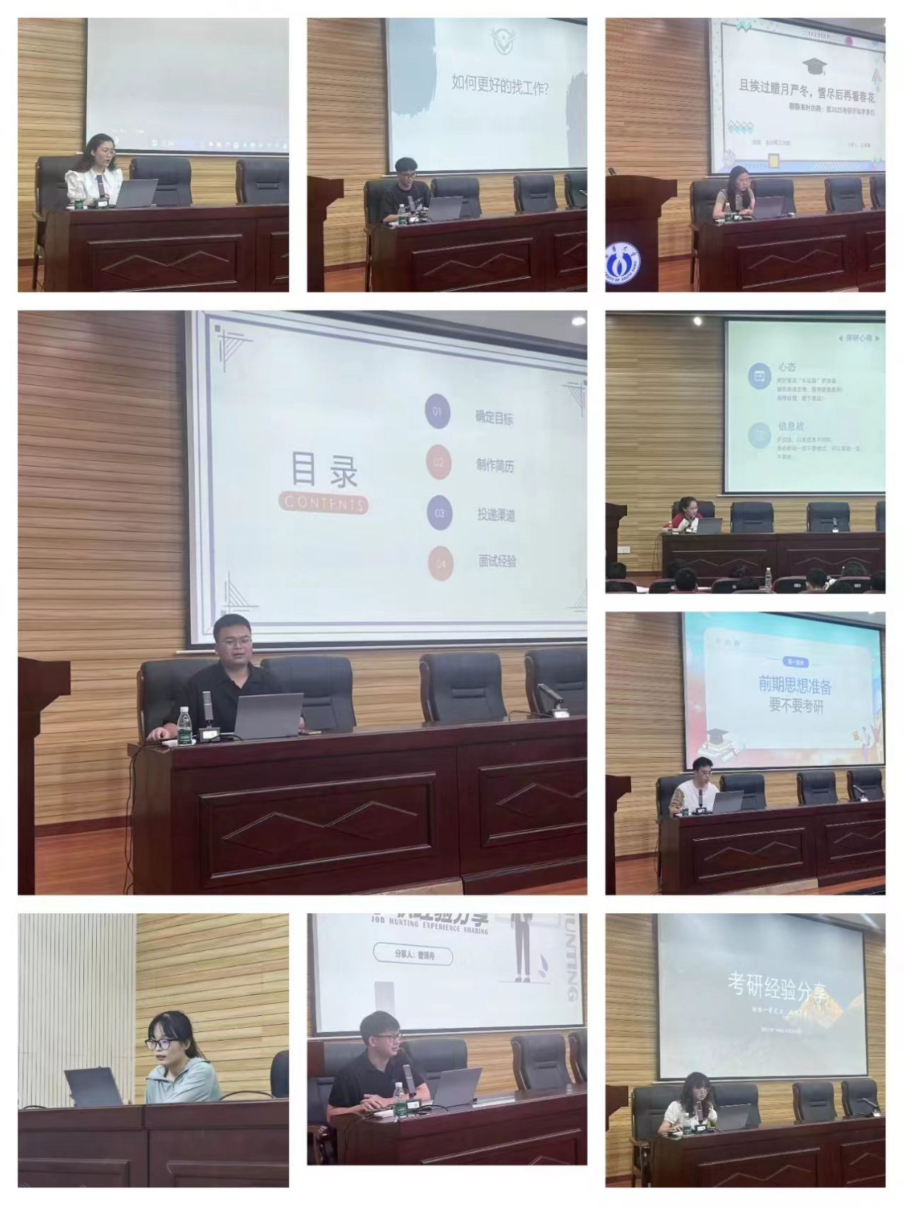 本次保研、考研、就业系列分享会的成功举行有利于同学们更好地了解和掌握考研、保研、就业的相关政策和方法,为其后续准备和职业规划提供了宝贵经验,相信通过九位优秀学长学姐们的经验分享,同学们一定能够启迪智慧的火花,编织梦想的桥梁,走出属于自己的成功之路。