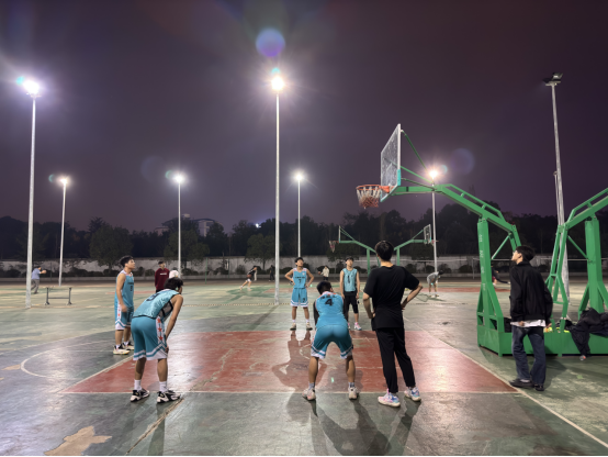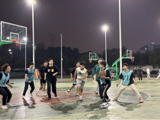 随着裁判的一声哨响,比赛正式开始。球员们在场上全神贯注,奋力拼搏,尽情展现着自己的竞技水平。场上节奏快速多变,抢断、传球、后背绕球、挡拆配合等精彩动作频频出现,令人目不暇接。每当投球入网,现场观众的掌声与欢呼声便如潮水般涌来,为球员们呐喊助威。在比赛的后期,研一篮球队凭借着紧密的配合,逐渐拉大比分差距,但研二篮球队即使在比分落后的情况下,也从未放弃,依然全力以赴,让比赛成为一场力量与激情的视觉盛宴。