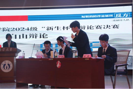 2024年12月3日晚,太阳集团城娱87222024年“新生杯”辩论赛决赛在红湘校区求是园学生活动中心展开。辩论赛的评委团由太阳集团城娱8722团委书记王祥,辅导员陈杰烜、周栋良,兄弟学院代表王瑞琦、刘益东、丁煜、张万海、柳紫妮、谢欣妍、廖志成、杨程、潘蕊等同学组成。本次辩论赛由谭嘉舜和吴丫爽同学主持。