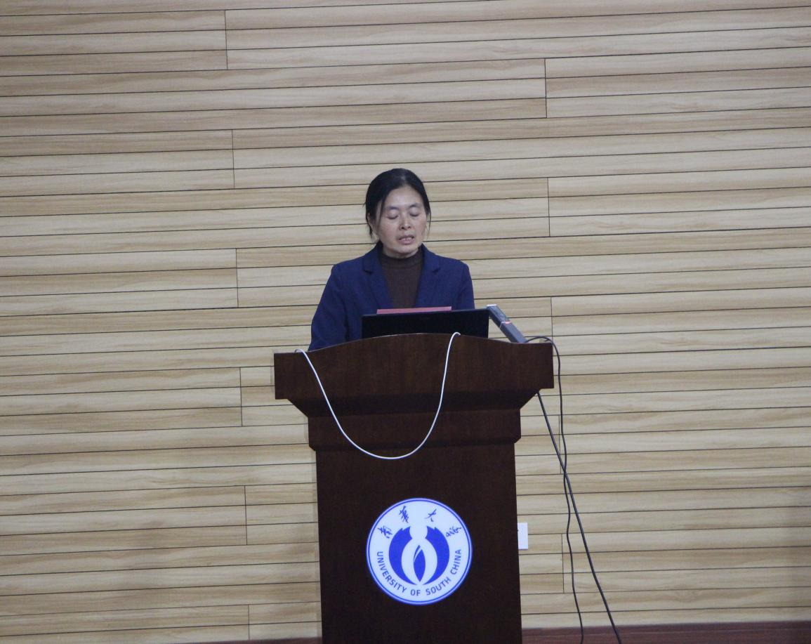 会议议程第二项,院党委副书记何战胜致开幕词。何书记从教学科研,人才培养,党建政治工作三个方面总结过去一年的工作成果。她表示学院将秉承“明德、博学、求是、致远”的校训,为实现学院高质量发展而努力奋斗。