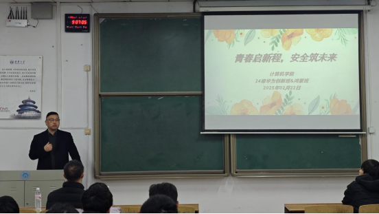 院长万亚平从“勤、思、忍、善”四个维度为同学们指明了成长方向与发展路径。在专题讲话中,万院长深入阐释了四字箴言的深刻内涵:“勤”乃立身之本,他以自身求学时期的室友为例,生动讲述了一位优秀学子从入学伊始便深入研究行业发展趋势与岗位核心技能,科学制定职业规划与自学方案,即便在课余娱乐之后仍坚持每晚学习1-2小时、凌晨五点准时起床的奋斗历程,以此勉励在场学子珍惜韶华、持之以恒;“思”为突破之源,强调要在专业领域深耕细作,着力培养批判性思维与创新能力;“忍”是处世之道,教导学生要以坚韧不拔的意志面对压力与挑战;“善”乃立心之基,倡导构建互帮互助、共同进步的良性同窗关系。作为鸿蒙班与软创班的主要推动者,万院长始终身体力行践行这四字箴言,以“排除万难、敢为人先”的担当精神推进教育教学改革,为学院创新人才培养模式树立了典范。