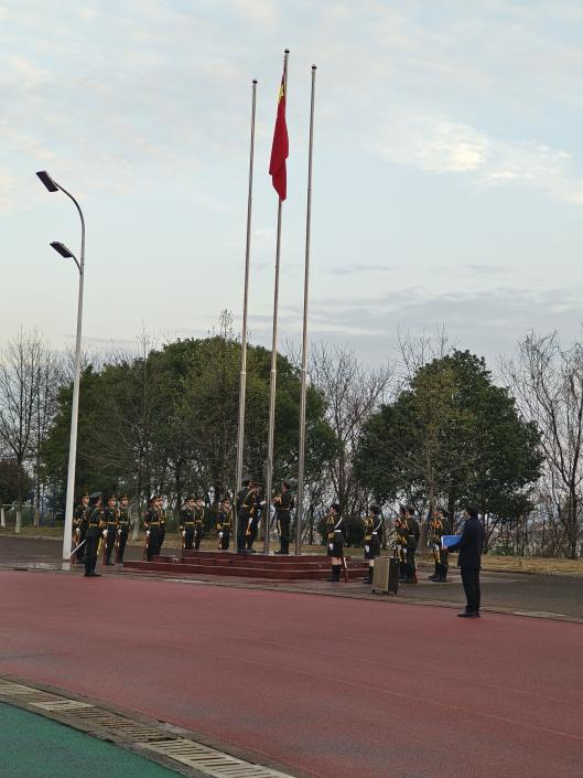 随后,院党委书记黄坤荣发表讲话。他首先肯定了此次升旗仪式的教育意义,并对全体同学提出三点希望:一是要志存高远,心怀 “国之大者”,将个人理想与国家前途紧密结合;二是要脚踏实地,珍惜大学时光,在学习实践中锤炼过硬本领;三是要勇于担当,主动肩负时代使命,在民族复兴的征程中书写青春华章。黄坤荣强调,青年一代生逢中华民族发展的最好时期,既面临着难得的建功立业的人生际遇,也肩负着 “天将降大任于斯人” 的时代使命,希望同学们以此次升旗仪式为起点,踔厉奋发、勇毅前行,努力成为堪当民族复兴大任的时代新人。