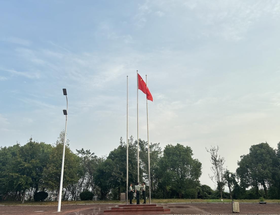 晨光熹微中,升旗仪式拉开帷幕,师生们肃立以待。伴随着激昂的国歌声,五星红旗冉冉升起,全体人员面向国旗行注目礼,齐声高唱国歌,以庄重的姿态表达对祖国的崇敬与热爱。
