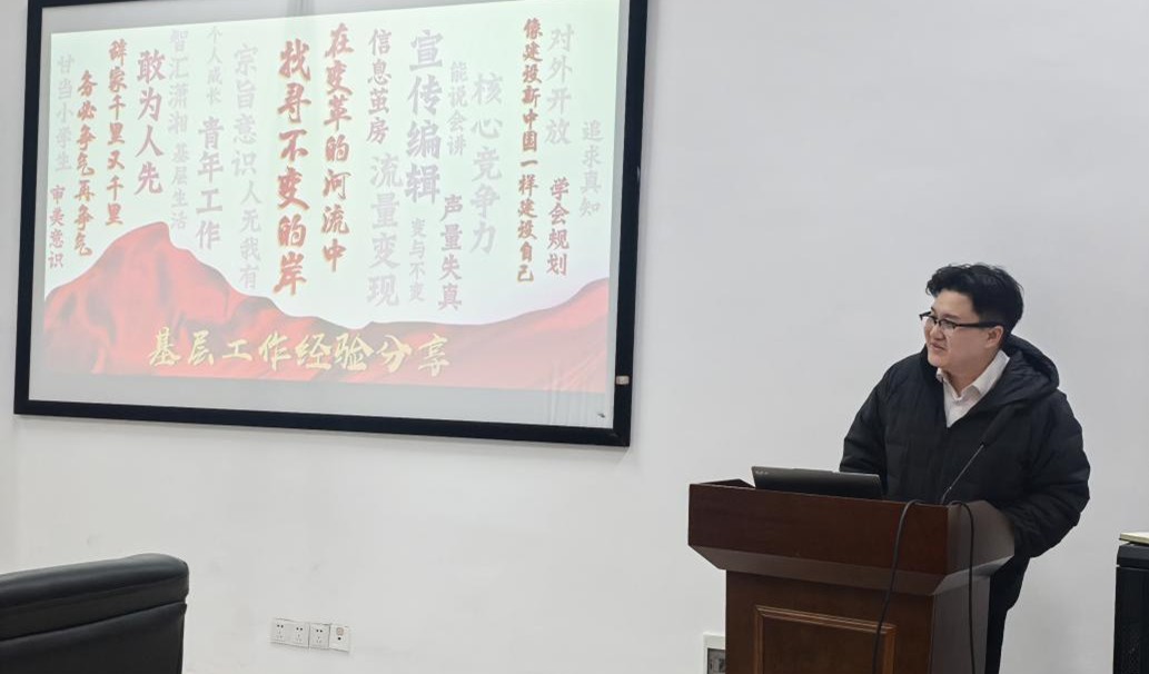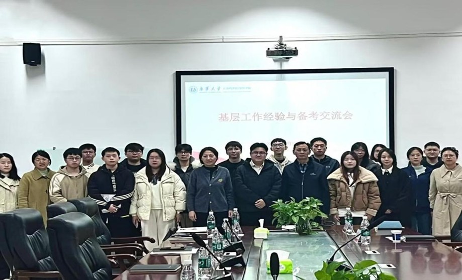 2025年12月12日,太阳集团城娱8722在学院办公楼D336举行基层工作经验与备考分享会。学校优秀校友张钞受邀为同学们讲解基层工作与就业经验。院党委副书记李国华,学工室主任单云丽,辅导员黄鑫楠、赵汕珊及部分学生代表参加分享会。本次分享会由辅导员陈芝翠主持。