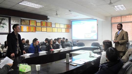 会议最后,David Ndzi博士同老师和同学们做交流。对于老师和同学们的诸如最优势学科、某些专业的区别等问题,David Ndzi博士都为大家做了细致的解答。