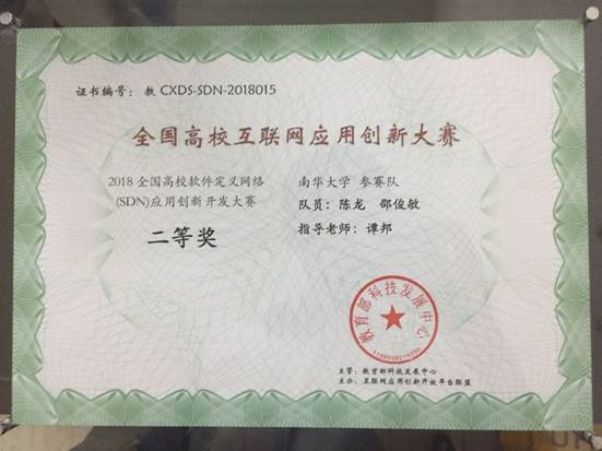 我校荣获第五届全国高校SDN网络应用创新开发大赛二等奖