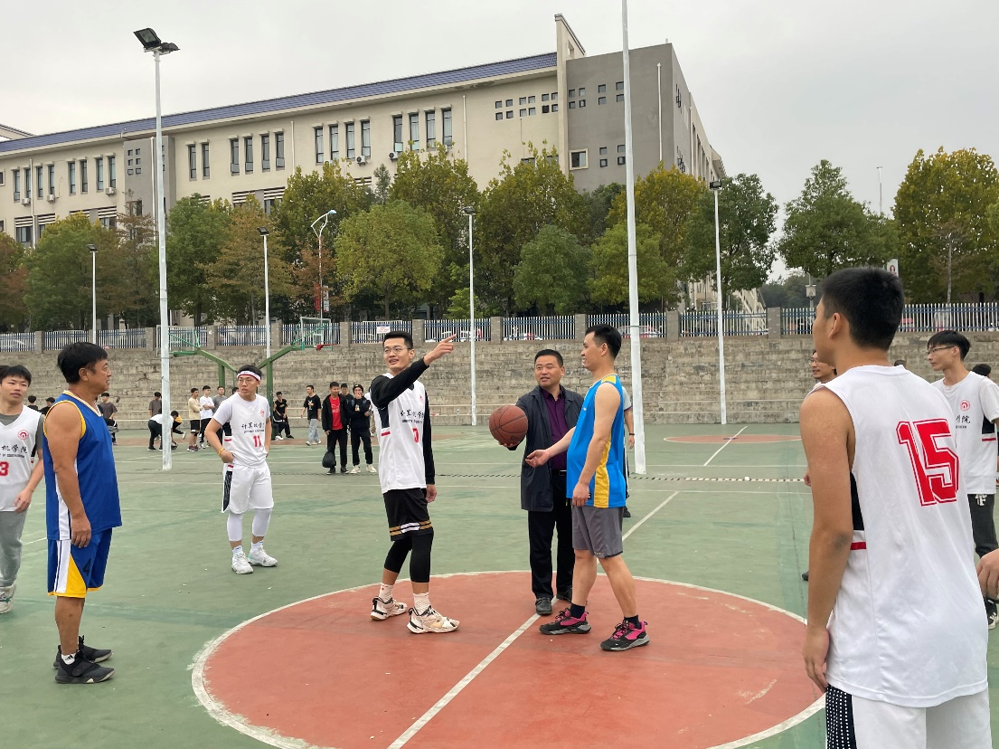 为促进我院学生与教师之间的交流,丰富学院学生与教职工的文体生活,11月12日下午,太阳集团城娱8722第二届篮球联谊赛第二场比赛在雨母校区笃行园球场展开比拼,太阳集团城娱8722院长万亚平到场与全体球员合影,为比赛开球并观看了比赛。