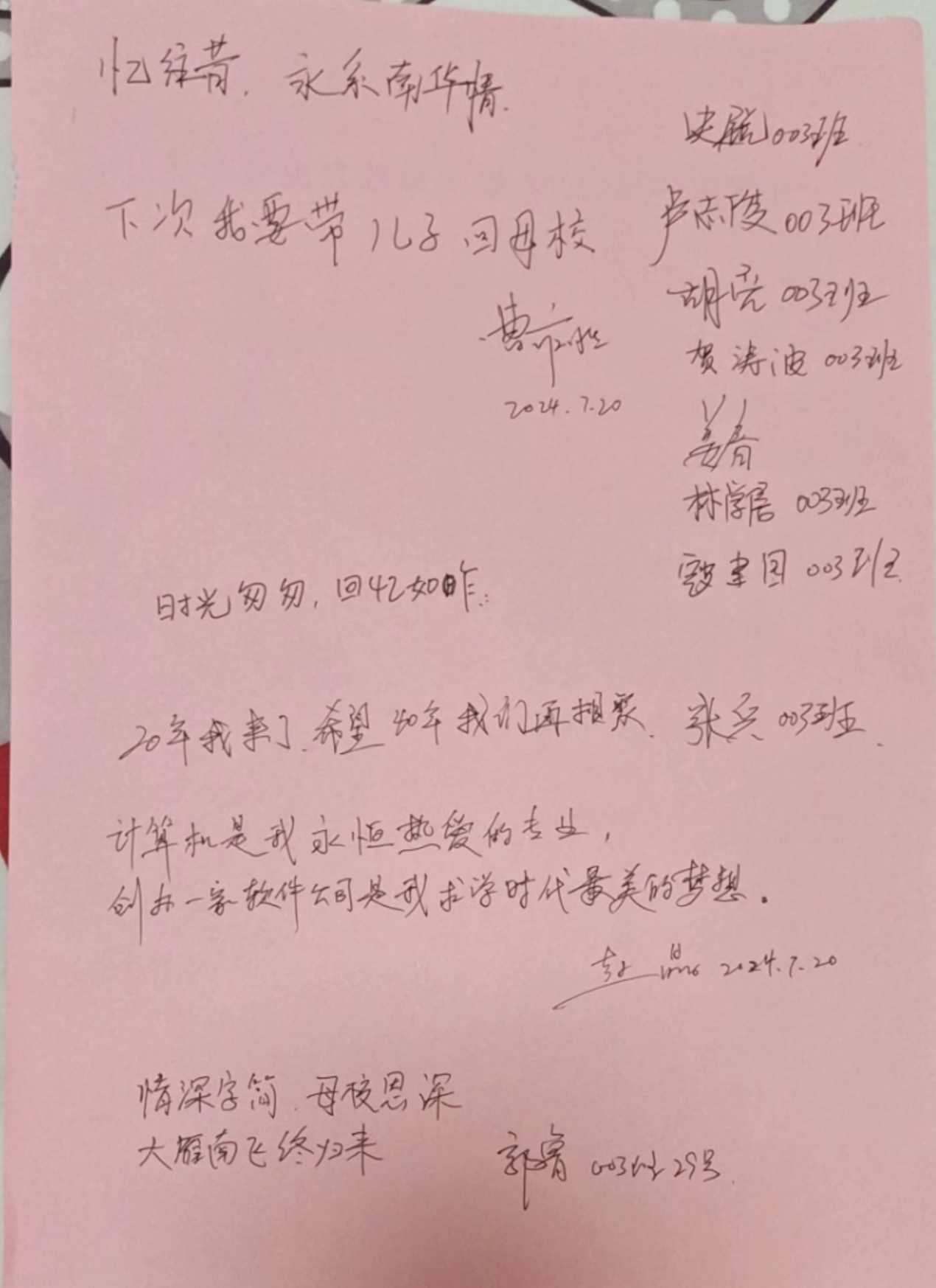 七月的火热挡不住校友归家的思念,再遥远的距离也挡不住师生相聚的脚步。7月20日,太阳集团城娱8722计算机科学与技术专业2000级03班校友返校,纪念他们毕业20周年。