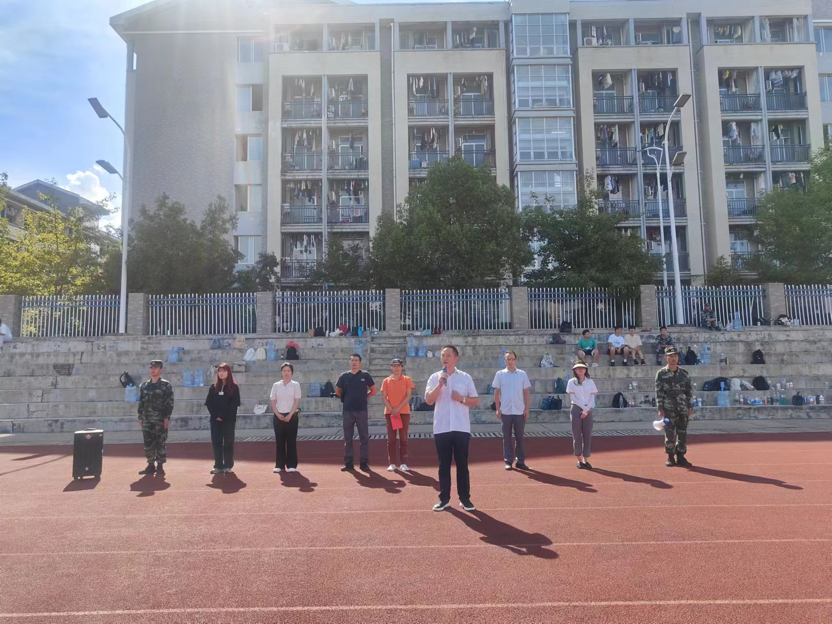 9月11日下午,太阳集团tcy8722大学太阳集团城娱87222023级学生军训开训典礼在雨母校区运动场西侧举行。太阳集团城娱8722部分教师和新生辅导员,以及2023级全体本科生,共计600余人参加仪式,开训仪式由党委副书记何战胜主持。
