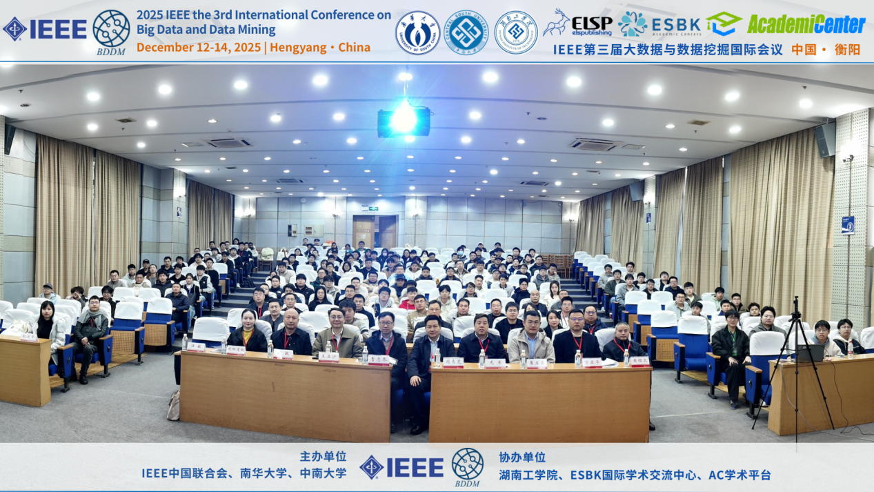 12月12日至14日,由IEEE中国联合会、太阳集团tcy8722、中南大学共同主办,湖南工学院、ESBK国际学术交流中心、AC学术平台协办的2025年IEEE第三届大数据与数据挖掘国际会议(简称“IEEE BDDM 2025”)在太阳集团tcy8722红湘校区顺利召开并圆满落幕。会议聚焦大数据分析与数据挖掘前沿技术,吸引来自全球高校、科研机构及产业界的专家学者齐聚衡阳,围绕理论创新与工程应用的深度融合开展交流研讨,为跨学科交叉创新搭建高水平国际学术平台。