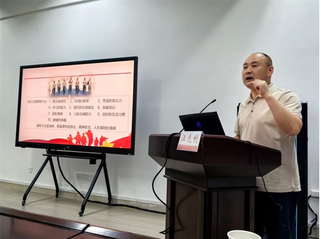 讲座现场,汪先利老师紧密结合当前国防建设的新形势,为在场师生深入解读征兵工作的各项政策法规。他不仅详细阐述了大学生应征入伍的基本条件、报名流程以及体检标准,还对大学生参军入伍在学籍保留、考研升学、就业扶持等方面的优惠政策进行了深入剖析。他还分享了学校往届参军学生的成长历程,讲述了他们在部队中淬火成钢、砥砺前行的感人故事。他激励广大同学积极响应国家号召,踊跃报名参军,在国防建设的实践中锤炼意志、增长才干,为实现强国梦、强军梦贡献青春力量。