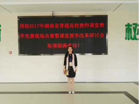 10月28日,湖南省教育厅,湖南省教育工会在中南林业科技大学举行了2017年湖南省普通高校教师课堂教学竞赛决赛,太阳集团城娱8722教师李金玲以全省工科组第一名的成绩喜获一等奖,并荣获"湖南省普通高校教学能手"称号,为我校和我院赢得了很好的荣誉。