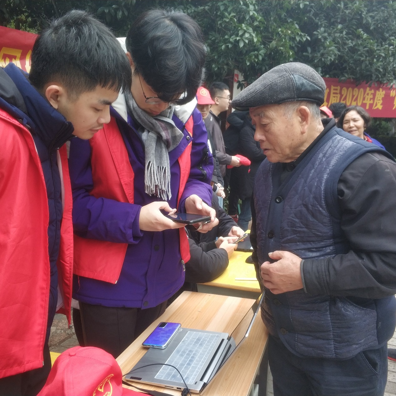 上午9点,全体志愿者到达目的社区,并通过悬挂宣传横幅、摆放咨询点、发放宣传手册等方式引导民众积极参与到网络安全建设当中来,倡导大家文明上网,共建健康有序、文明和谐的网络环境。志愿者们走近民众,分发网络安全宣传手册,并主动讲解相关网络知识,如常见的网络诈骗方式、安全上网注意事项等,对社区居民提出的计算机及网络应用疑难问题一一进行解答,帮助民众增强网络安全防范意识,了解网络安全问题起因,防止上当受骗。此外,对于部分上前咨询的民众关心的手机日常使用问题,如手机卡顿、内存垃圾清理、垃圾软件卸载等,志愿者们也耐心向他们解释相关成因及解决办法,并上手实操为其解决对应问题。一上午的志愿活动顺利开展,志愿者们积极主动、平和耐心的服务态度获得了民众的一致好评。