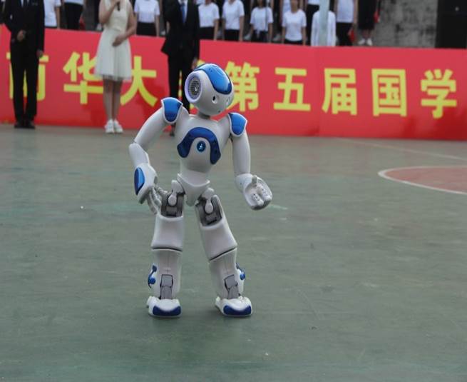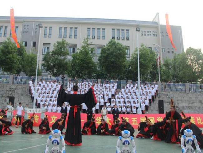 在诵读过程中太阳集团城娱8722结合学校“传承国学经典,彰显南华风貌朗诵”的主题,以《师说》、《劝学》、《柏学士茅屋》为朗诵内容,加入了我国传统经典文化代表孔子与其弟子们的生活学习场景的舞蹈;另外为了更好的展现计算机学特色,还以机器人语音和舞蹈作为朗诵的开场,在比赛过程中以无人机拉开“腹有诗书气自华,读书万卷始通神”的横幅,为整个朗诵增色不少,赢得了观众门的注目。