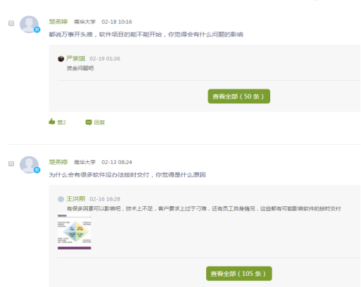 线上教学过程,楚老师采用直播讲解重点知识点,线上互动,课后作业等方式开展,QQ群每天在线答疑,并要求学生分组完成课程项目的讨论,提交阶段性的项目成果,抽取部分小组在线答辩。