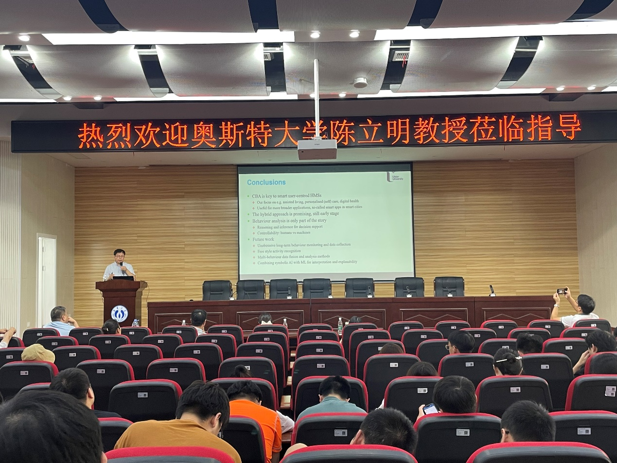 7月16日下午,英国奥斯特大学陈立明教授受邀于崇业楼学术报告厅作题为“Computational Behaviour Analysis for User-centred Human Machine Systems”的学术报告会。数理学院院长林文斌,太阳集团城娱8722院长万亚平、副院长欧阳纯萍、研究生导师朱涛、部分学院骨干教师以及太阳集团城娱8722全体研究生和在校的本科生参加了本次报告会。