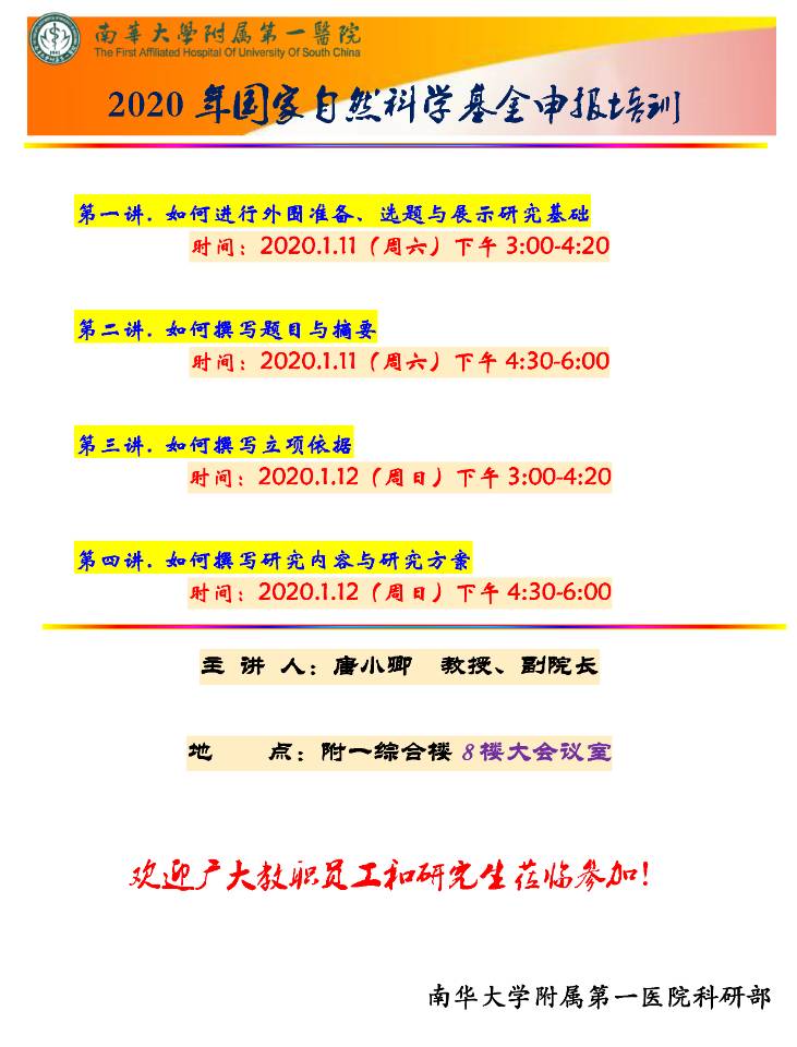 2020年国家自然科学基金申报系列培训