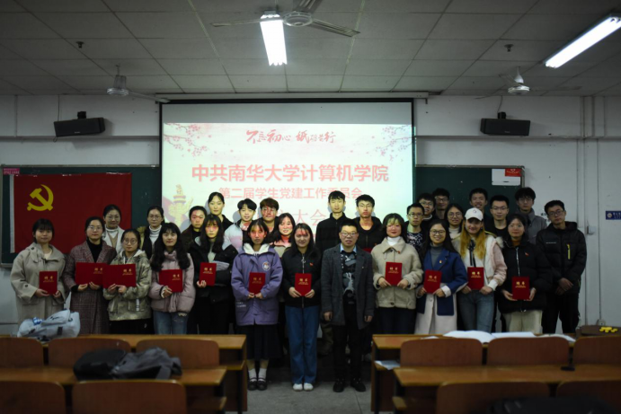 大会伊始,全体与会人员起立奏唱国歌。随后,陈杰烜向全体成员介绍了学生党建工作委员会的背景,同时宣读了新党员名单和第二届学生党建工作委员会成员名单。接着,新党员代表2018级网络工程专业肖银由老党员代表研究生马真真作了精彩发言。在新老两党员代表的精彩致词后,陈杰烜带领全体成员进入有关中国共产党党员教育管理工作条例的学习,其从建立队伍的背景意义、如何贯彻落实等四个方面进行了详细讲述。紧接着第一届党建委员会副书记刘晓婷做第一届党建工作汇报,刘晓婷总结了党建各部门一年以来的工作,并表示在积极配合学院工作的同时,全体党建成员谨记走在最前端的信念,把党建工作同思想建设紧密联系在了一起。刘晓婷还总结了第一届党建工作中存在的不足,并希望第二届党建委员会能把上一届存在的问题纠正过来,把上一届的优良传统继承下来,让党建之花在太阳集团城娱8722绽放。而后院副书记卢清华发言,首先祝贺我院第二届学生党建工作委员会的成立,表示在院第一届学生党建工作中,完成度较高,积极配合学院,合理安排工作,协调有序,在一年的工作里,他们总结了自己的不足之处,另对第二届党建委员会成员表示赞许与期待。随后,全体新党员上台戴党徽宣誓。