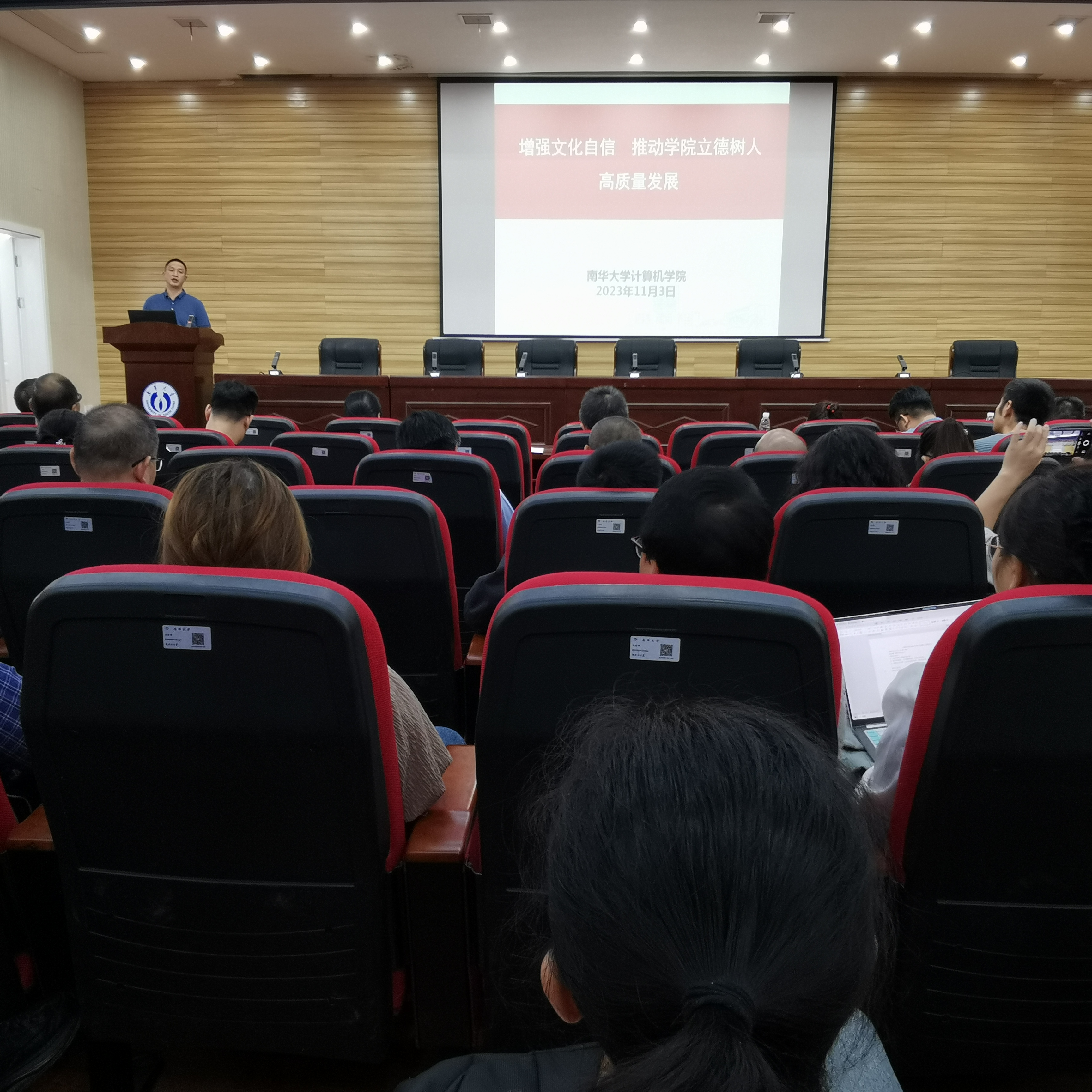 太阳集团城娱8722党委书记黄坤荣,传达了学校关于进行2023年第八次教职工理论学习的通知,按要求带领大家进行了理论学习,并以本次理论学习为契机,讲了一堂题为“增强文化自信 推动学院立德树人高质量发展”的党课。