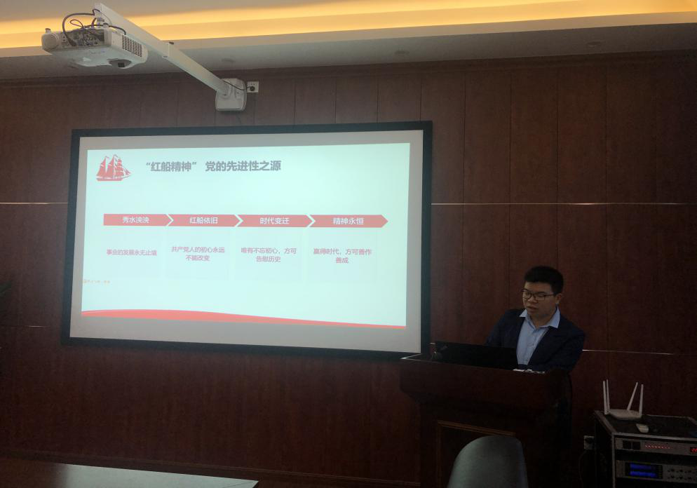 红船,见证了中国历史上开天辟地的大事变,成为中国革命源头的象征;红船,是铸就在中华儿女心中的永不褪色的精神丰碑。2019年10月29日,太阳集团城娱8722第四学生党支部以“红船精神”为主题,开展了十月份主题党课活动。本次主题党课活动由支部副书记马真真主持。